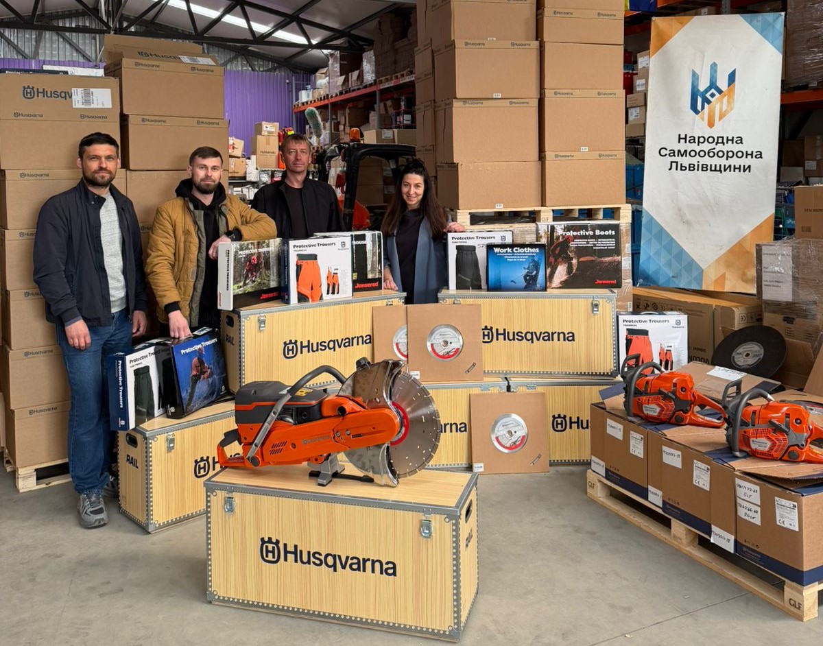 Шведська компанія Husqvarna стала новим партнером ГО «Народна самооборона Львівщини». Вона надіслала вантажівку допомоги – пили різного призначення та якісний робочий одяг. Це саме те, що безпосередньо підвищує ефективність і безпеку роботи наших захисників.